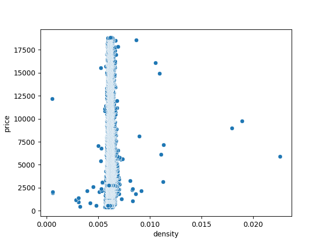 carat cut color clarity depth ... x y z volume density 0 0.23 Ideal E SI2 61.5 ... 3.95 3.98 2.43 38.202030 0.006021 1 0.21 Premium E SI1 59.8 ... 3.89 3.84 2.31 34.505856 0.006086 2 0.23 Good E VS1 56.9 ... 4.05 4.07 2.31 38.076885 0.006040 3 0.29 Premium I VS2 62.4 ... 4.20 4.23 2.63 46.724580 0.006207 4 0.31 Good J SI2 63.3 ... 4.34 4.35 2.75 51.917250 0.005971 [5 rows x 12 columns]