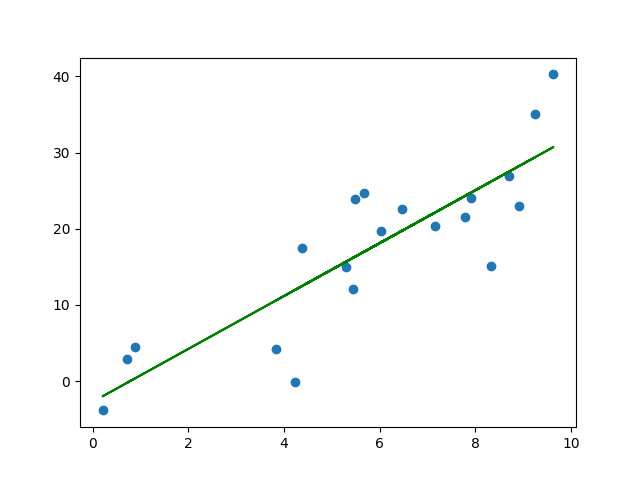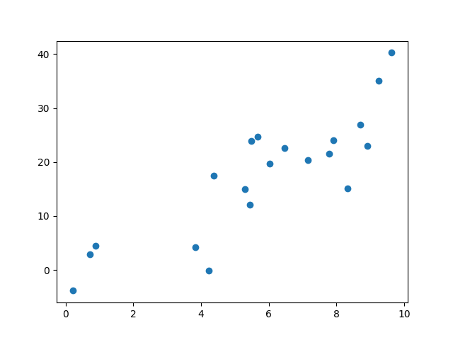 y = (3 * x + np.random.randn(20, 1) * 5).reshape(-1, 1)